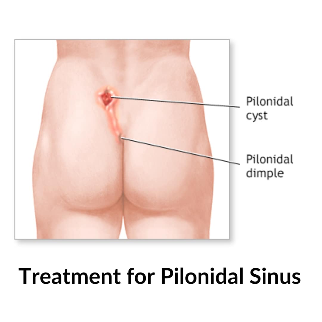 A Pilonidal sinus also called Pilonidal cyst, Pilonidal abcess or Sacrococcygeal fistula is a cyst ( small sac ) or tunnel in the skin. It develops over the tailbone at the top of the cleft of the buttocks. The cyst usually contains hair and skin debris. More than one cyst may develop and these are linked by tunnels under the skin.